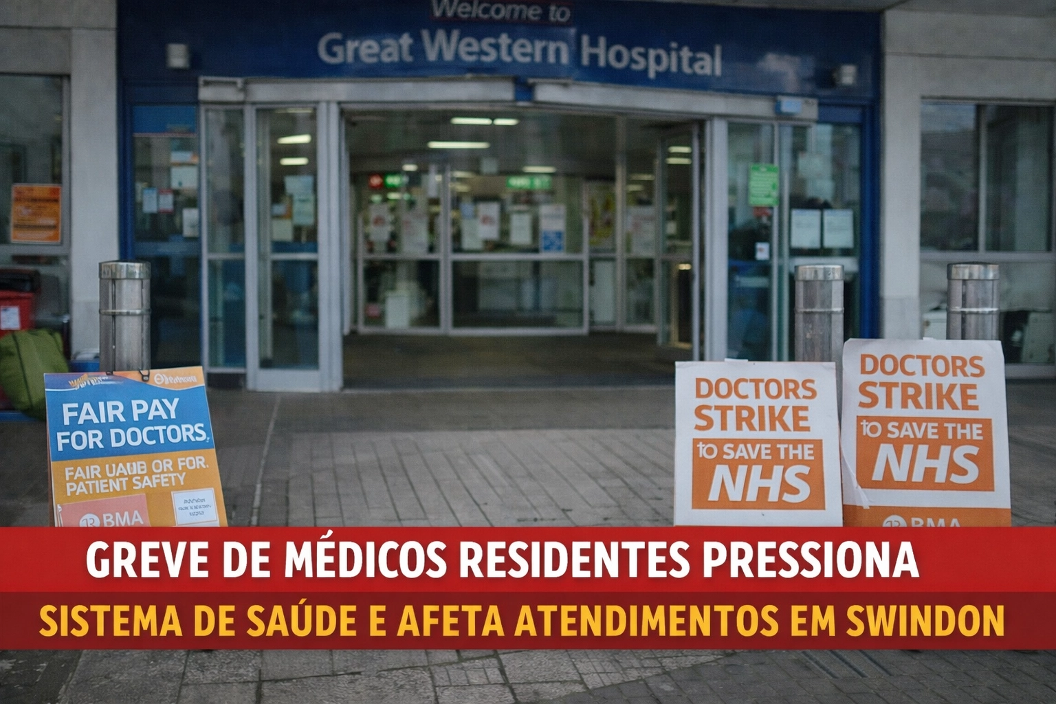 O sistema público de saúde do Reino Unido, o National Health Service (NHS), enfrenta mais um período de forte pressão com a nova greve dos médicos residentes, que terá início no dia 7 de abril e se estende até a manhã de 13 de abril de 2026. A paralisação, organizada pela British Medical Association (BMA), já é considerada uma das mais longas dos últimos anos e deve impactar diretamente o atendimento em diversas regiões, incluindo a cidade de Swindon.
